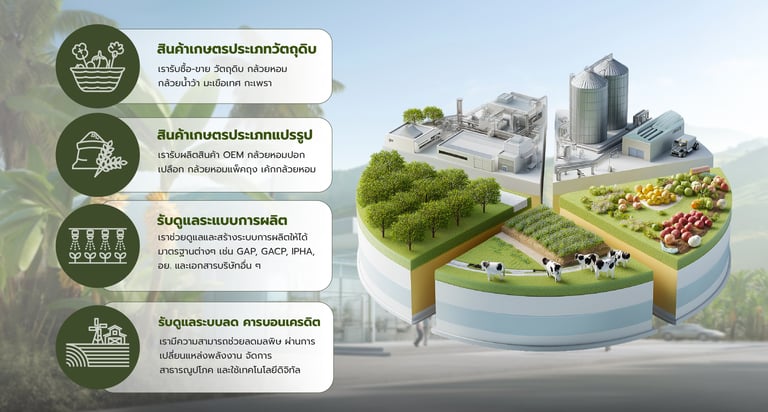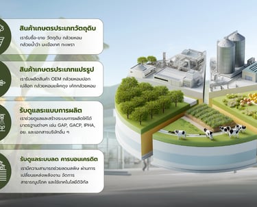 เราขายและแปรรูปวัตถุดิบเกษตรคุณภาพสูงจากใจเกษตรกรไทยสู่ตลาดทั่วประเทศ