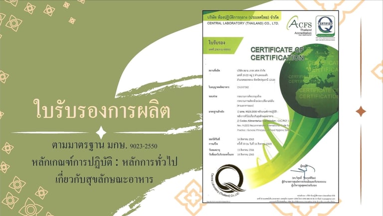 มาตราฐาน GHPs codex ที่ผ่านการตรวจสอบจาก ห้องปฏิบัติการกลาง(ประเทศไทย) จำกัด